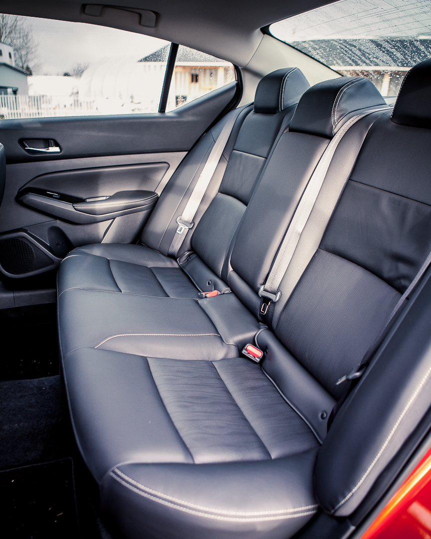 Passengers in the back enjoy their own air vents and USB charging ports, one for USB C and one for USB A. The rear legroom is very decent, but the headroom can be tight for taller passengers.